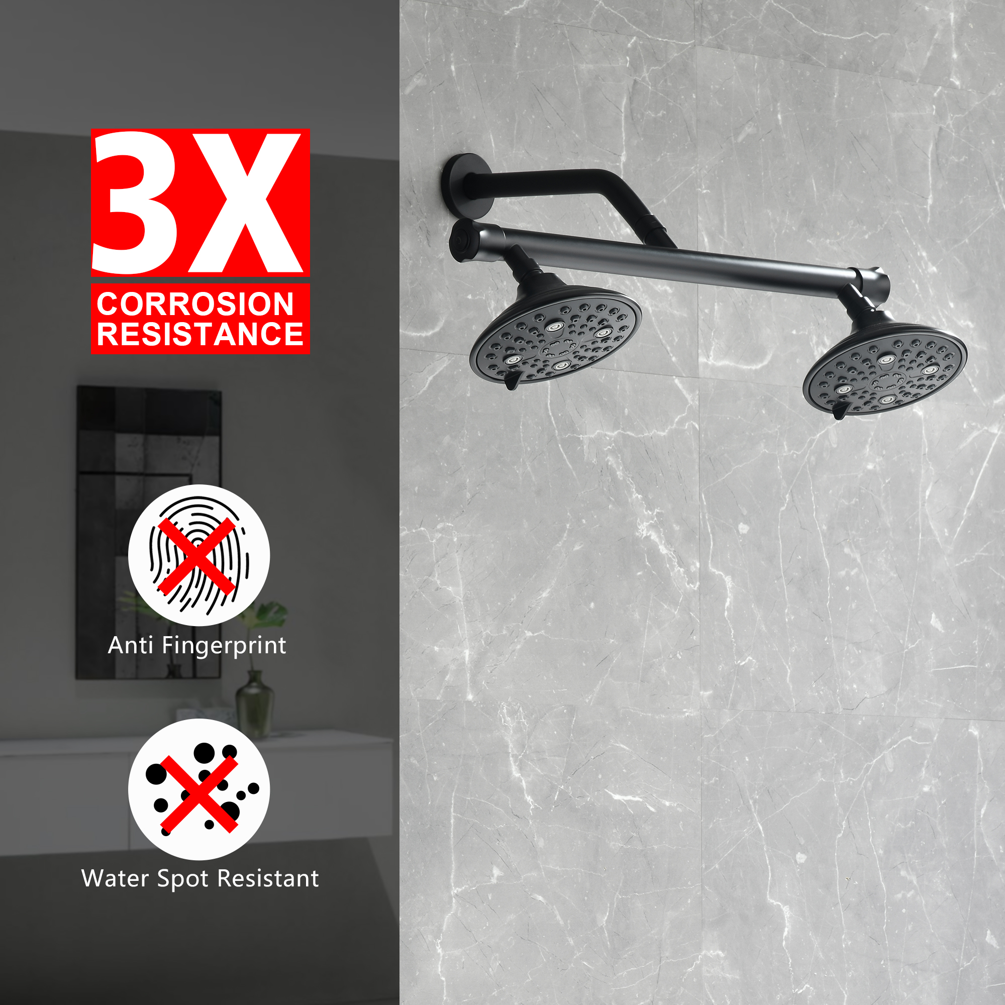 Dual Manifold Shower Kit with Shutoff Valve & 6 Spray Patterns – Model 4366K, Matte Black Finish, Wall Mount Shower Arm